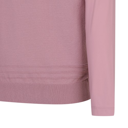 ◇ DESCRIPTION - 냉감 소매 니트. - 엠보 로고 포인트. - 소매에는 냉감 소재를 사용해 시원하게 착용 가능.