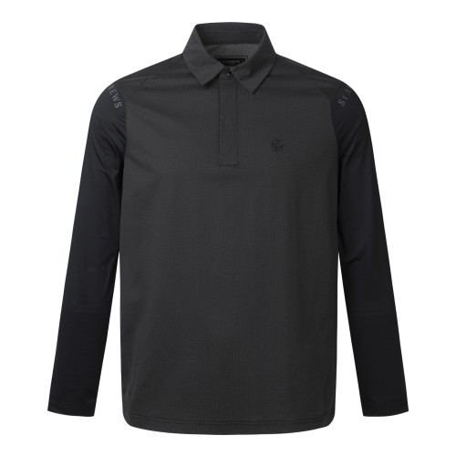 남성 백 로고 자가드 메쉬 냉감 하프 집업 긴팔 티셔츠