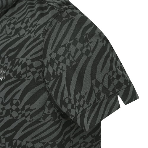 ◇ DESCRIPTION - 옵아트 자가드 티셔츠 - 기하 무늬와 로고를 혼합한 착시 효과가 있는 옵아트 무늬. - 재활용 폴리에스터 소재의 ECO PET를 사용한 친환경적인 아이템.