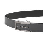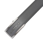 남성 메탈 로고 솔리드 레더 벨트