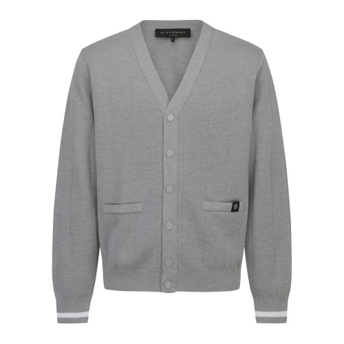 남성 솔리드 백 우븐 믹스 울 가디건