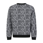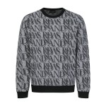 남성 레터링 자가드 라운드 스웨터