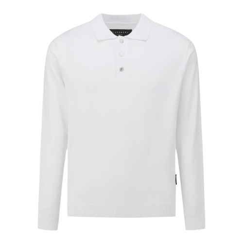 남성 심볼 자수 리브 칼라 긴팔 니트
