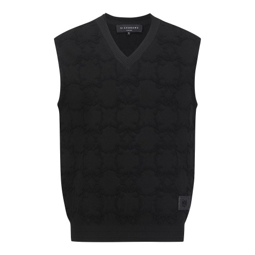 남성 STA 로고 자카드 V넥 니트 베스트