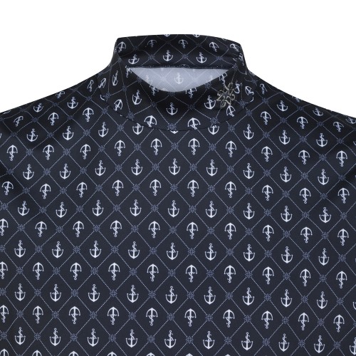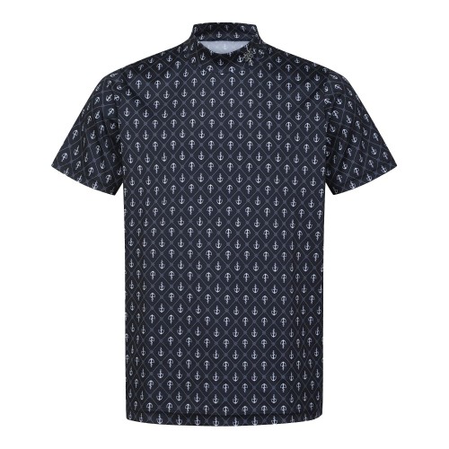 남성 로고 아가일 패턴 모크넥 반팔 티셔츠