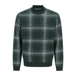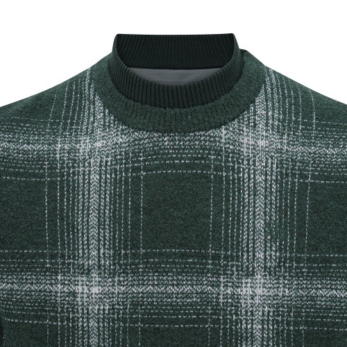 남성 채크 레이어드 라운드넥 방풍 니트
