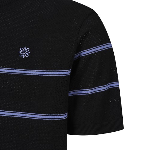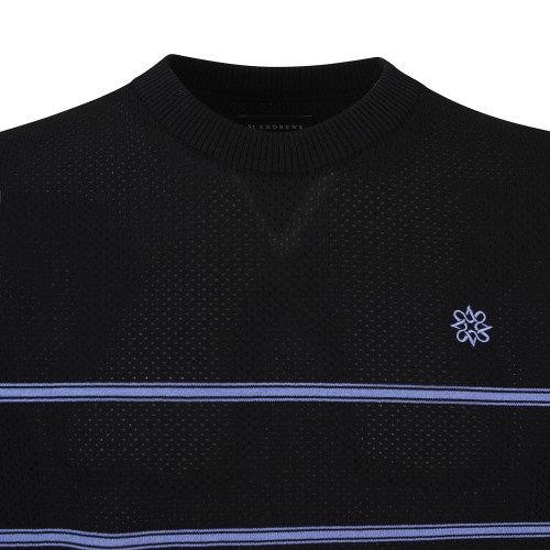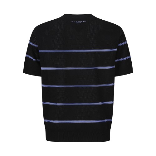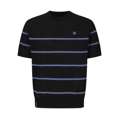 남성 스트라이프 타공 반팔 니트