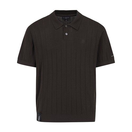 남성 스트라이프 조직감 칼라 반팔 니트