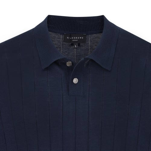 남성 스트라이프 조직감 칼라 반팔 니트