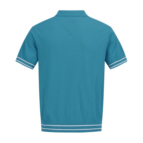 남성 스트라이프 조직감 칼라 반팔 니트