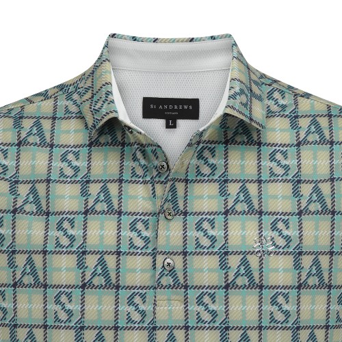 남성 메탈릭 심볼 로고 체크 반팔 티셔츠