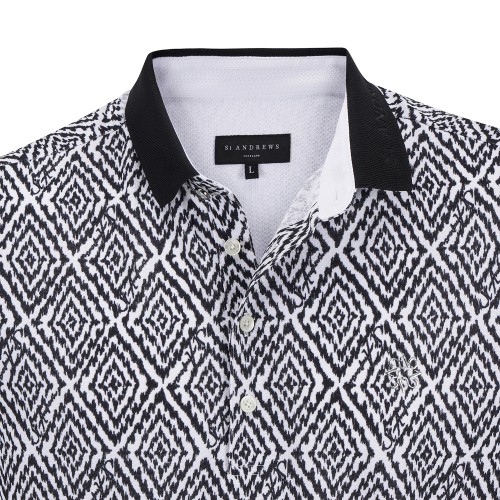 남성 별 심볼 다이아 패턴 카라 반팔 티셔츠