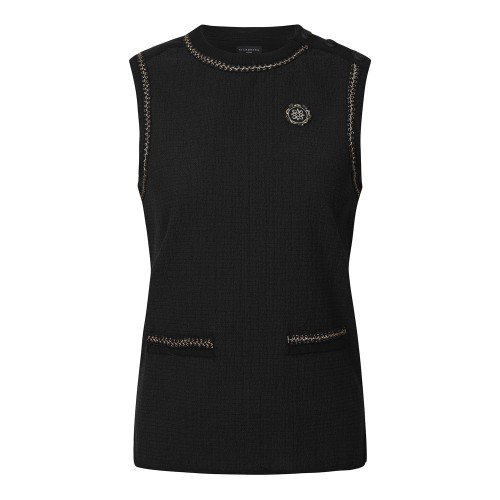 여성 트위드 조직 니트 베스트