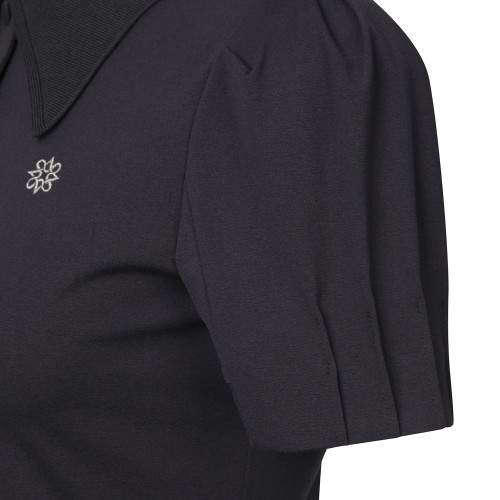 여성 니트 카라 핀턱 소매 반팔 티셔츠