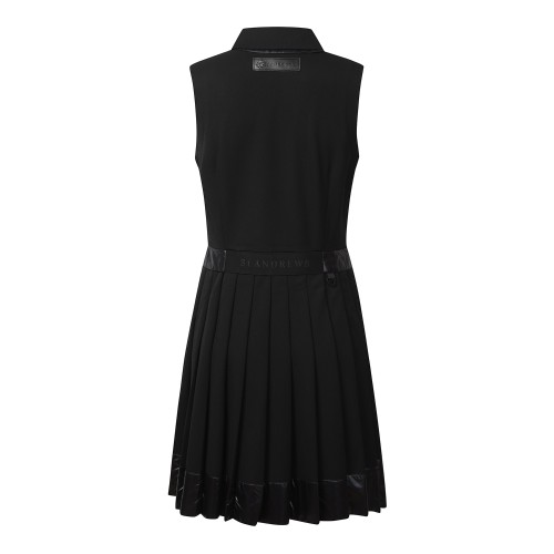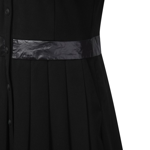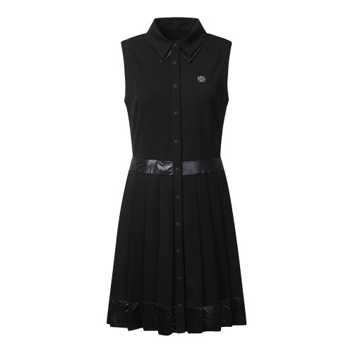 여성 우븐 패치 카라 플리츠 원피스