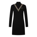 여성 레이어드 글리터 라인 터틀넥 니트 원피스
