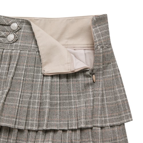 여성 비조 디테일 3단 플리츠 큐롯 스커트