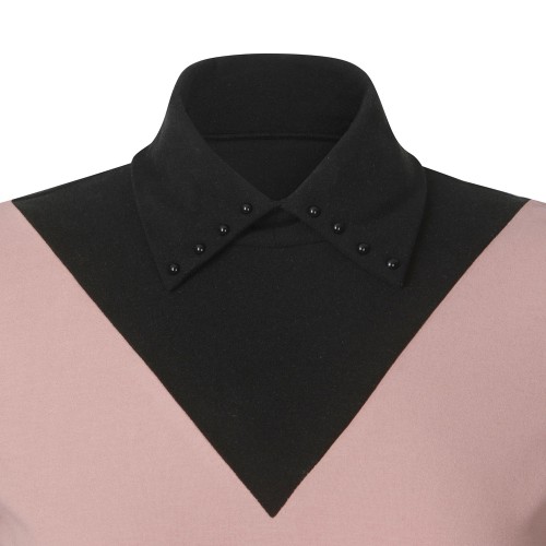 여성 에코 레더 퀼팅 카라 긴팔티셔츠