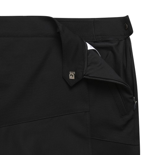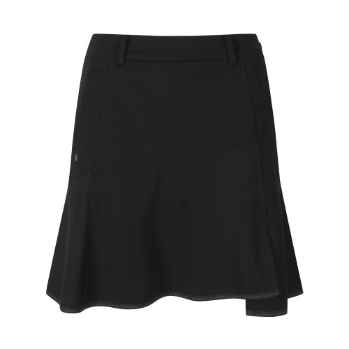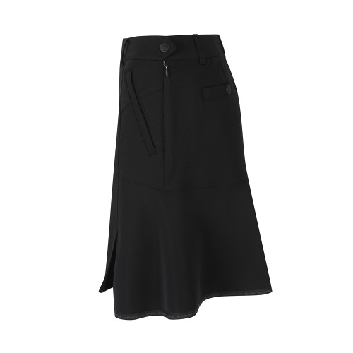 ◇ DESCRIPTION - 우븐 믹스 미디 큐롯 스커트. - 상/하단 소재를 다르게 사용. - 밑단 전체에 로고 테이프 포인트.