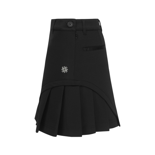 ◇ DESCRIPTION - 언발란스 밑단 플리츠 디테일 스커트. - 탄력성 있는 소재.