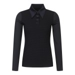 여성 우븐 빅카라 골지 냉감 소매 긴팔 티셔츠+0원