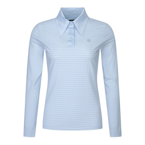 여성 우븐 빅카라 골지 냉감 소매 긴팔 티셔츠+0원