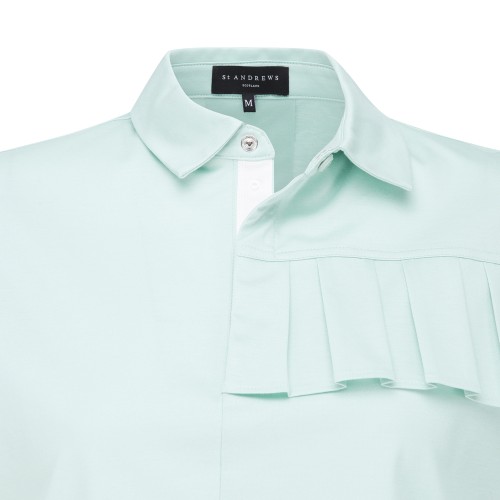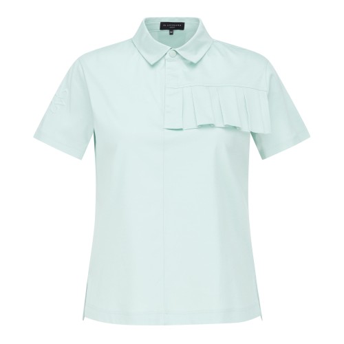 ◇ DESCRIPTION - 플리츠 장식 크롭 기장 티셔츠. - 세인트만의 여성스러운 느낌의 플리츠 디테일과 세미 오버핏의 크롭 디자인을 더한 아이템. - 산뜻한 분위기의 컬러 아이템.