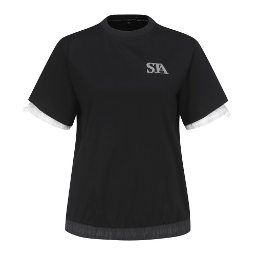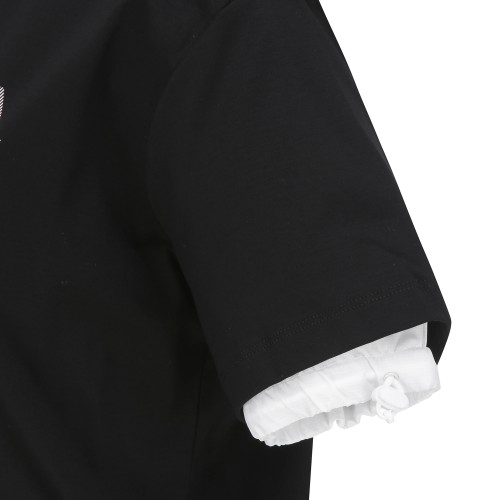 ◇ DESCRIPTION - 이중 소매 라운드 티셔츠. - 여름철 땀 흡수율이 좋고 면 100%의 단점인 구김을 최소한 시킨 소재 사용. - 밑단과 소매단에 스트링 디자인과 우븐 배색으로 포인트를 준 아이템. ※ 반드시 단독 손세탁