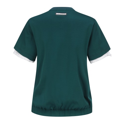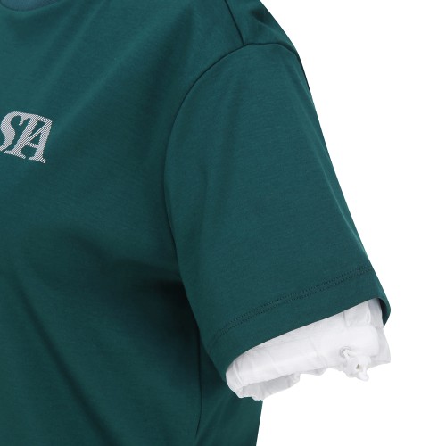 ◇ DESCRIPTION - 이중 소매 라운드 티셔츠. - 여름철 땀 흡수율이 좋고 면 100%의 단점인 구김을 최소한 시킨 소재 사용. - 밑단과 소매단에 스트링 디자인과 우븐 배색으로 포인트를 준 아이템. ※ 반드시 단독 손세탁