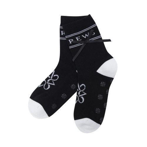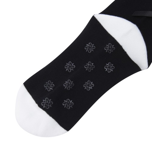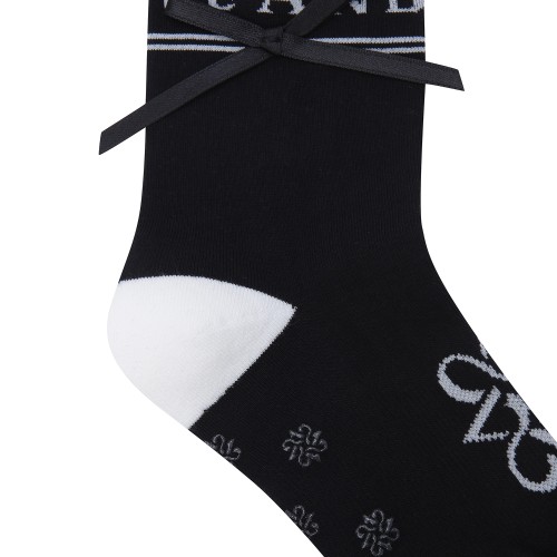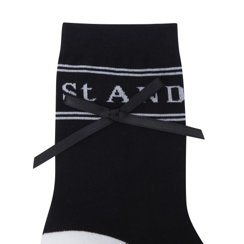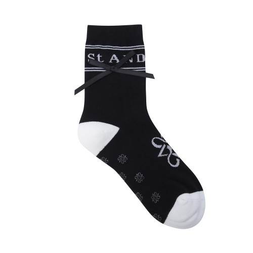여성 스트라이프 로고 자카드 리본 중목 양말