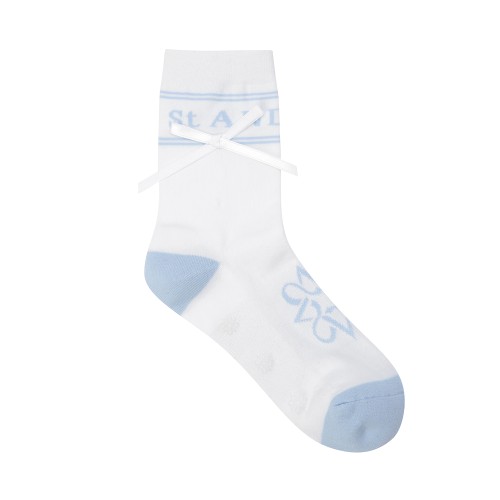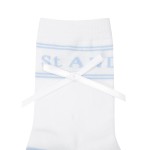 여성 스트라이프 로고 자카드 리본 중목 양말