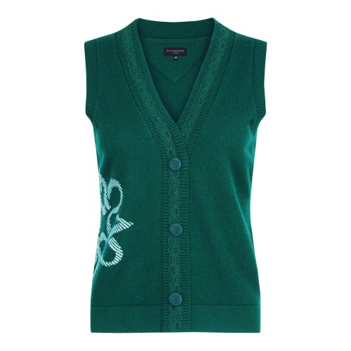 5th Anniversary SPECIAL LIMITED EDITION ◇ DESCRIPTION - 5주년 기념 페이크 오픈 니트 베스트. - 레이스 테이프 포인트. - 캐시미어 원단으로 따뜻하게 착용 가능.