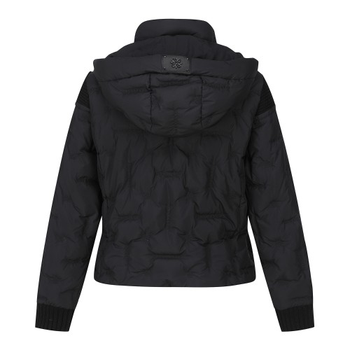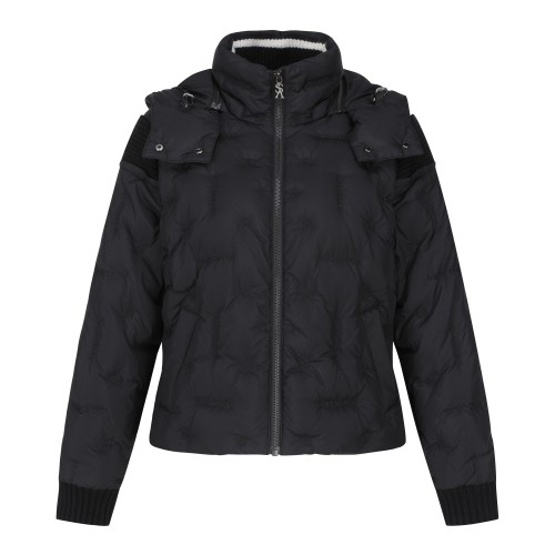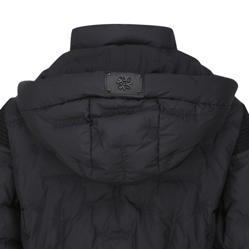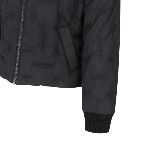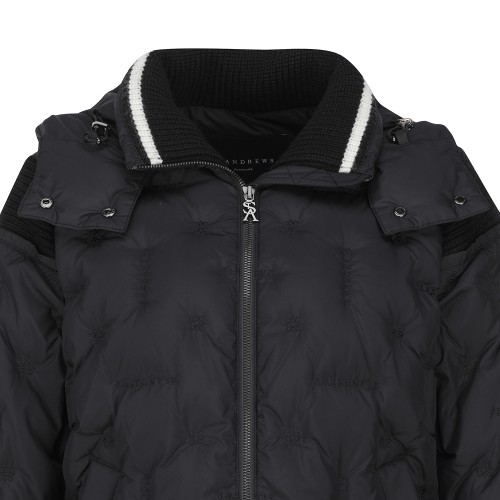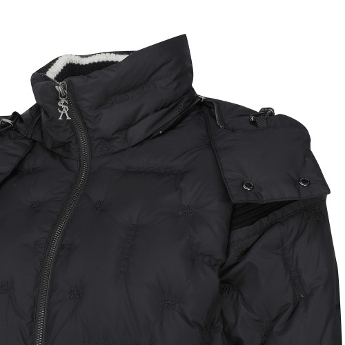 여성 별 심볼 레더 패치 튤립 후드 다운 점퍼