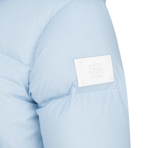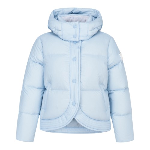 여성 별 심볼 레더 패치 튤립 후드 다운 점퍼