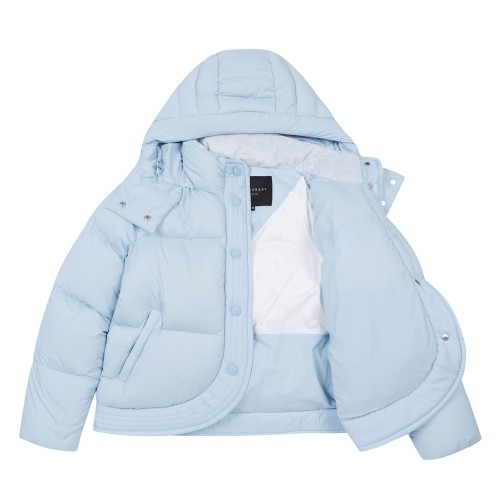 여성 로고 자수 후드 구스다운 점퍼
