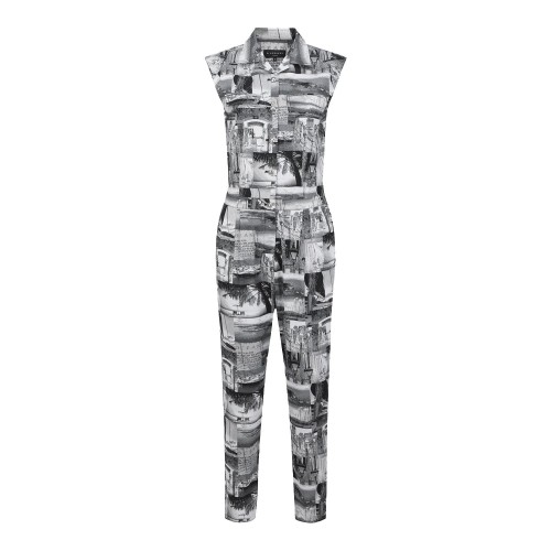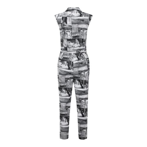 여성 모노 자카드 슬리브리스 점프수트
