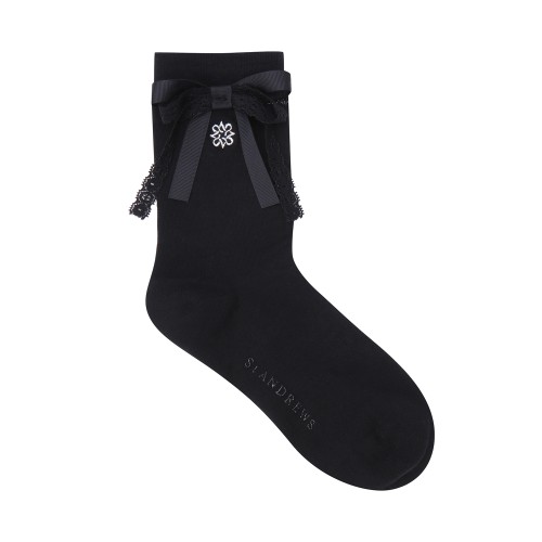 여성 레이스 리본 글리터 라인 중목 양말