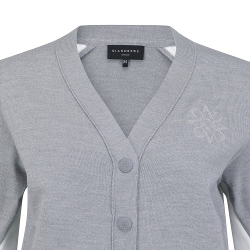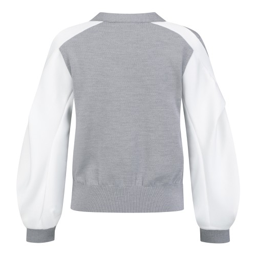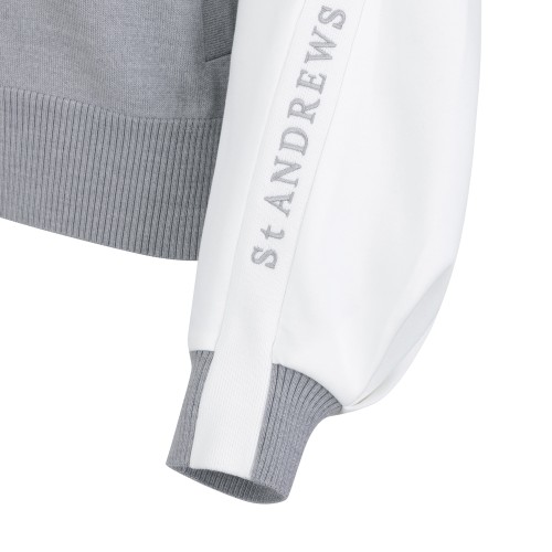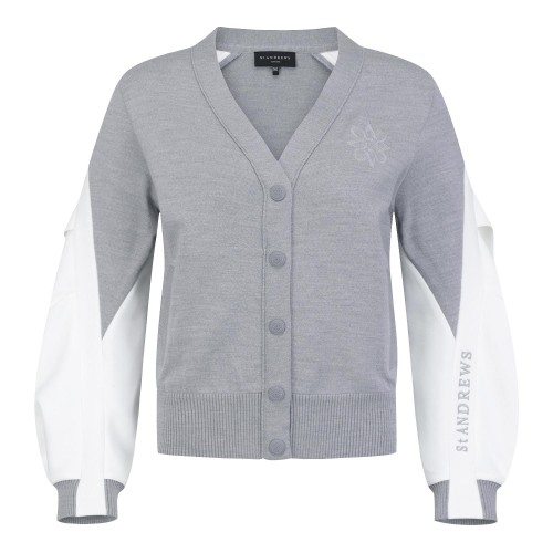여성 로고 자수 슬리브 배색 니트 가디건+0원