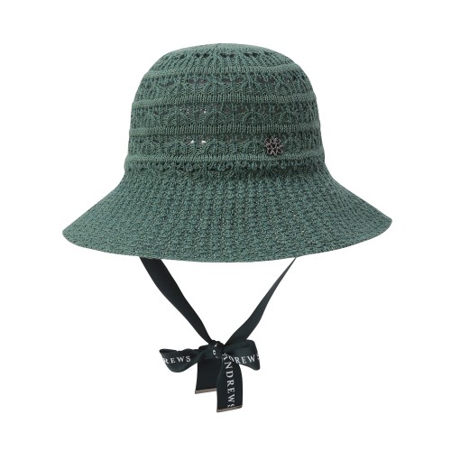 여성 로고 리본 크로쉐 라피아 햇
