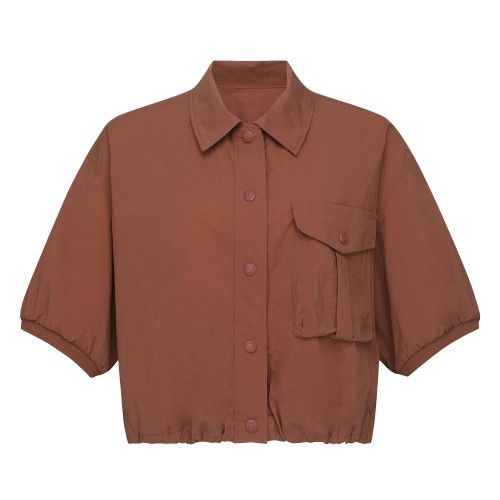 여성 플랩 포켓 스트링 루즈 점퍼