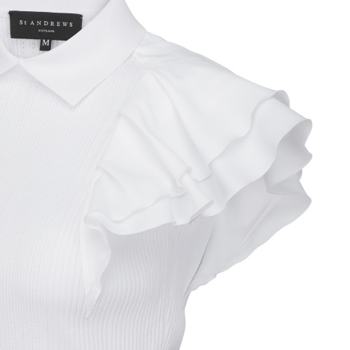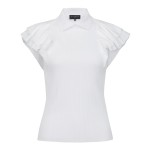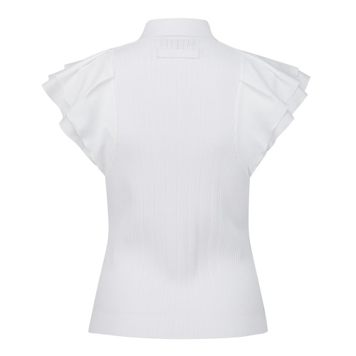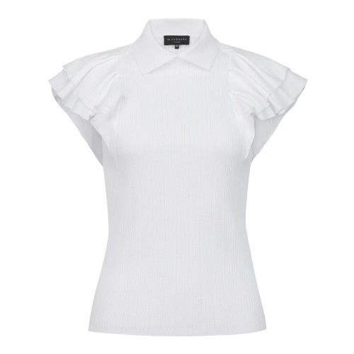 여성 프릴 블록 칼라 골조직 니트