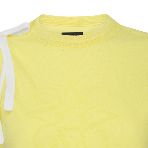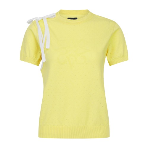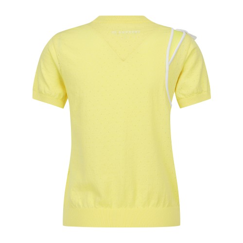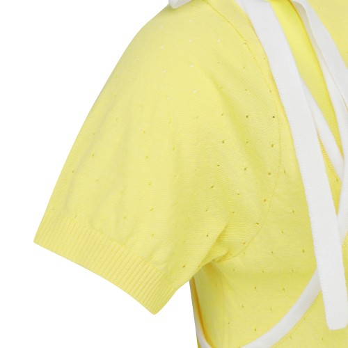 여성 배색 스트랩 타공 반팔 니트