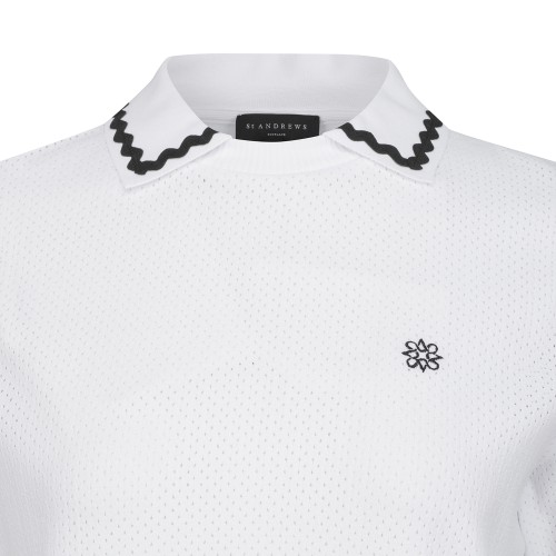 여성 우븐 믹스 웨이브 라인 칼라 니트
