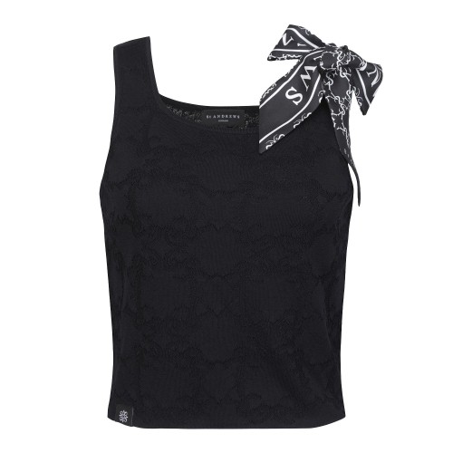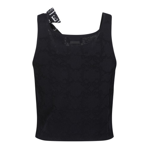 여성 로고 스트랩 패턴 니트 베스트