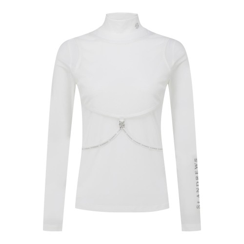 여성 메쉬 레이어 로고 스트랩 티셔츠