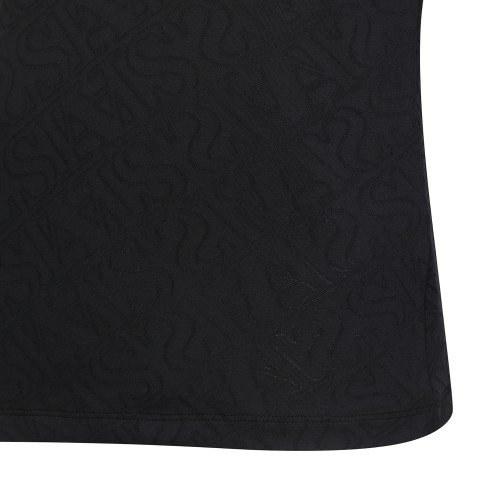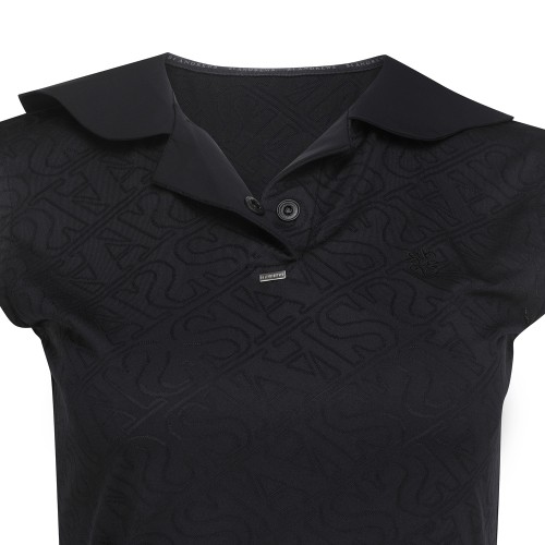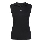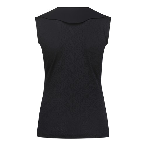 여성 로고 패턴 오픈 칼라 슬리브리스 탑