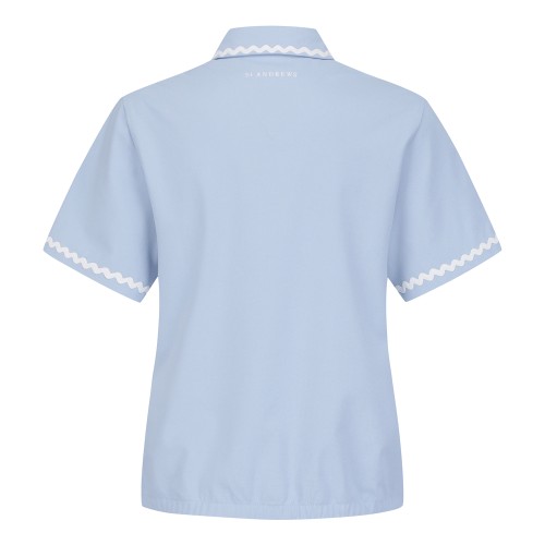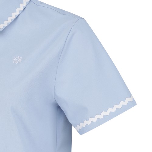 여성 배색 웨이브 칼라 반팔 티셔츠