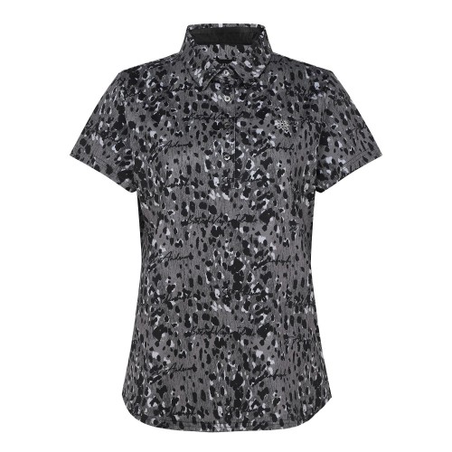 여성 로고 도트 패턴 칼라 반팔 티셔츠