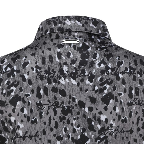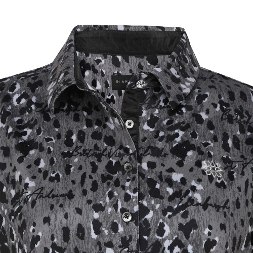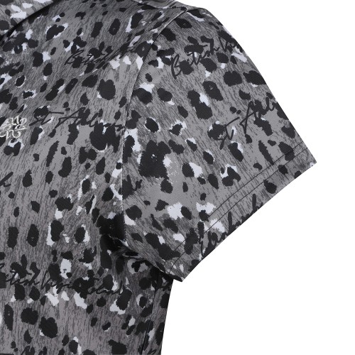 여성 레터링 레오파드 칼라 반팔 티셔츠
