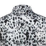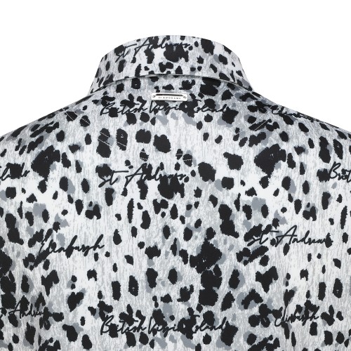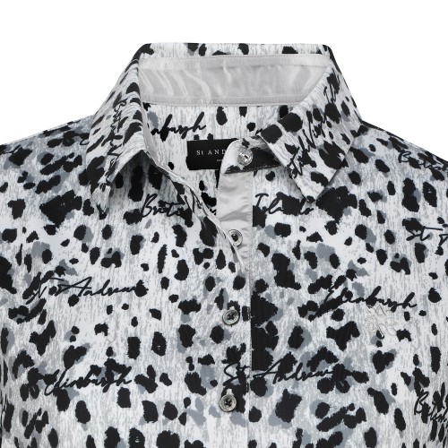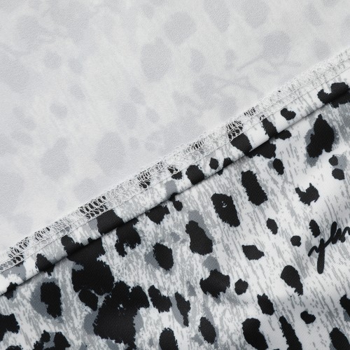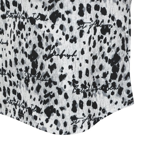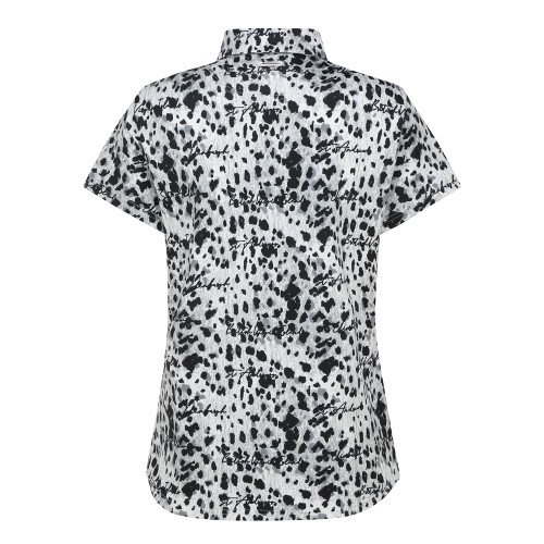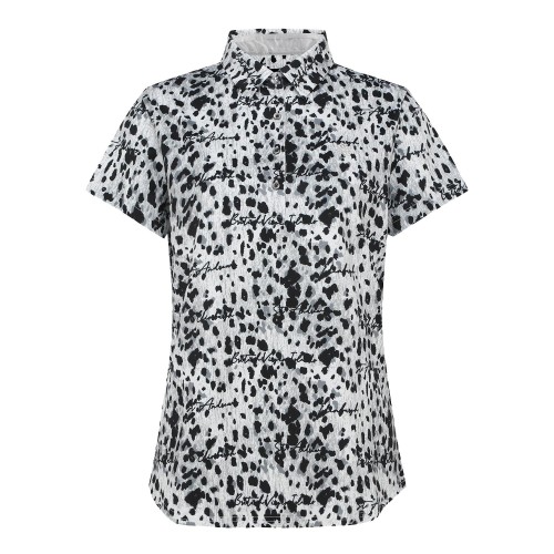 여성 레터링 레오파드 칼라 반팔 티셔츠